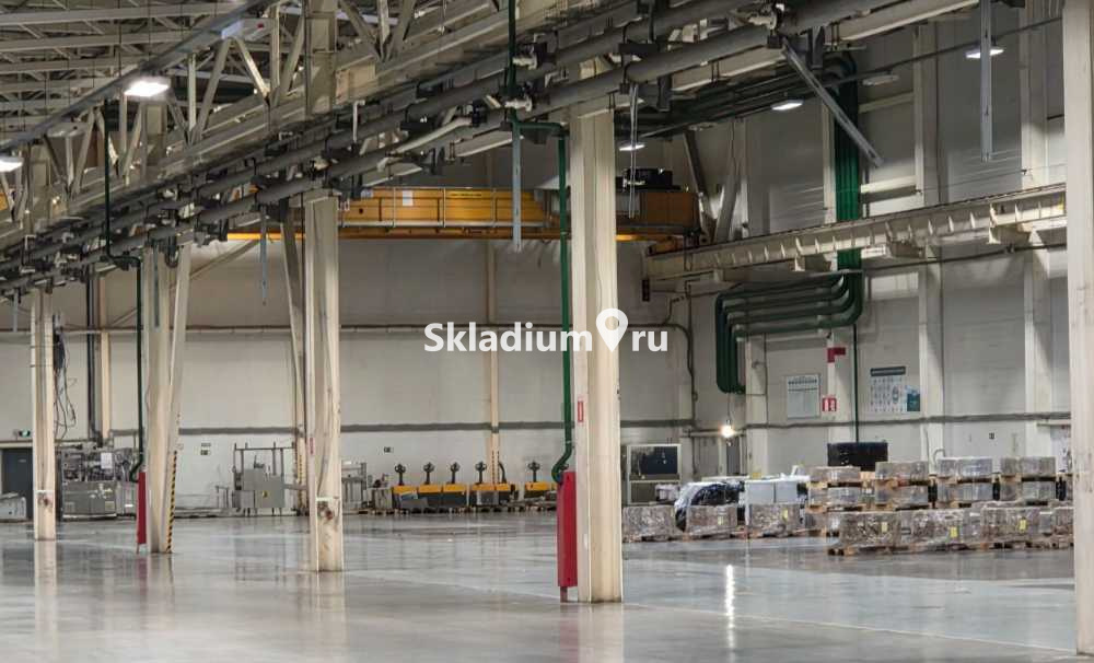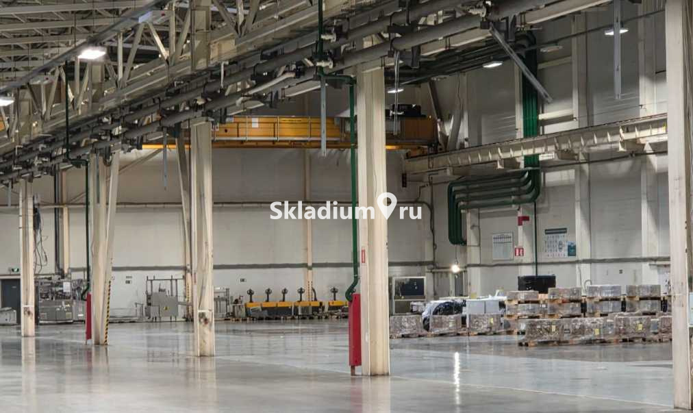 Площадь, м.кв.: 14 216,6 Целевое назначение: склад для хранения товаров непродовольственного назначения / производство Электроснабжение: 1600 кВа Водоснабжение / отведение: 79 м3/сутки Газоснабжение: 200 м3/час Технология: здание включает 3 отсека: - АБК: 1039 м2 - складская / производственная зона:11878 м2 - крытая зона разгрузки:1343 м2 складская / производственная зона включает: - подкрановую зону 26 х 95 м - основную зону 96 х 96 м В здании на надземных подкрановых путях установлены два мостовых крана, изготовленные в 2011 и 2013 годах. Производитель SWF (Словения). Грузоподъемность каждого 40 тонн, имеется дополнительный механизм грузоподъемностью 20 тонн, управление дистанционное по радиоканалу. Рабочая зона 22 метра по ширине, 95 метров по длине цеха. Высота подъема 8 метров. Скорость механизма подъема имеет ступенчатую регулировку 0,42 метра в минуту или 2,5 метра в минуту, скорость передвижения крана 32 метра в минуту, передвижения тележки 20 метров в минуту. Возможно совмещение двух любых движений. Питание трехфазное, 400 вольт.